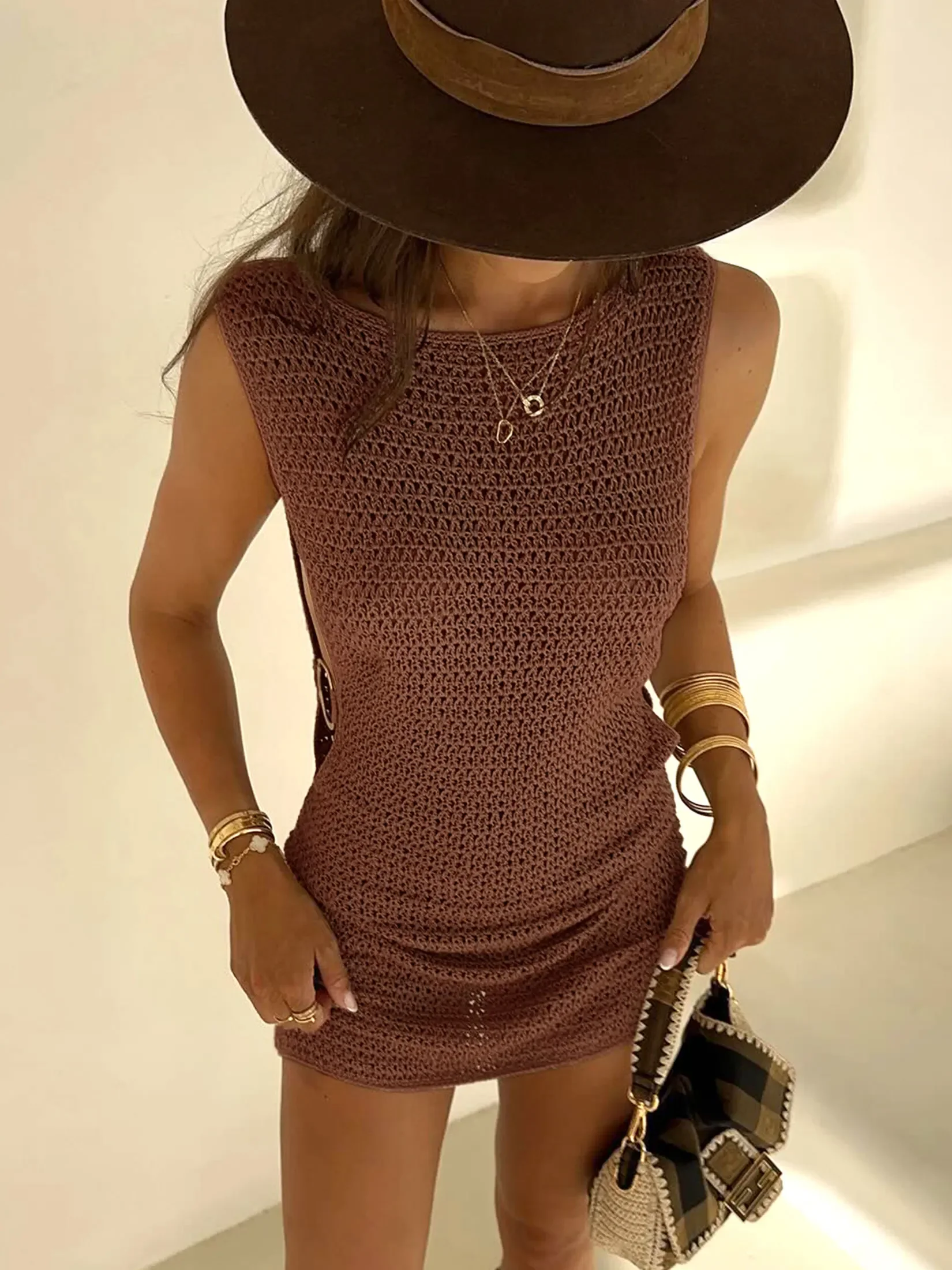 2024 Summer Sexy One Neck Cut Out Circle Decoration Corset Slim Beach Mini Dress Women Seaside Beachwear Swimwear Cover Up A2796