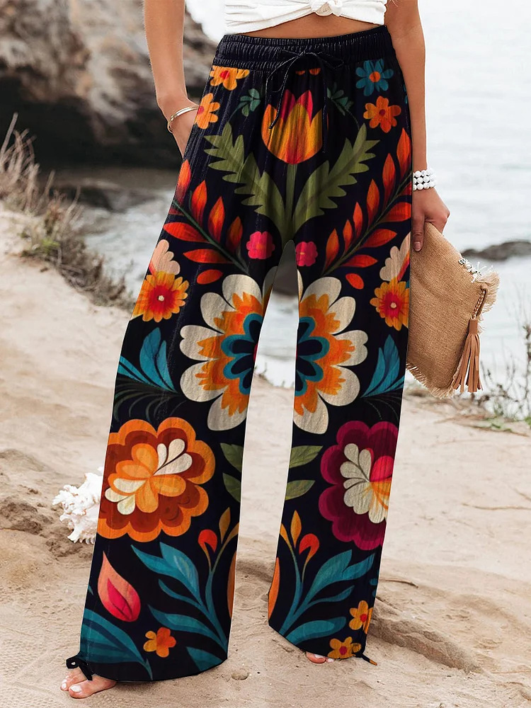 Ethnic Pattern Floral Print Casual Jumpsuit