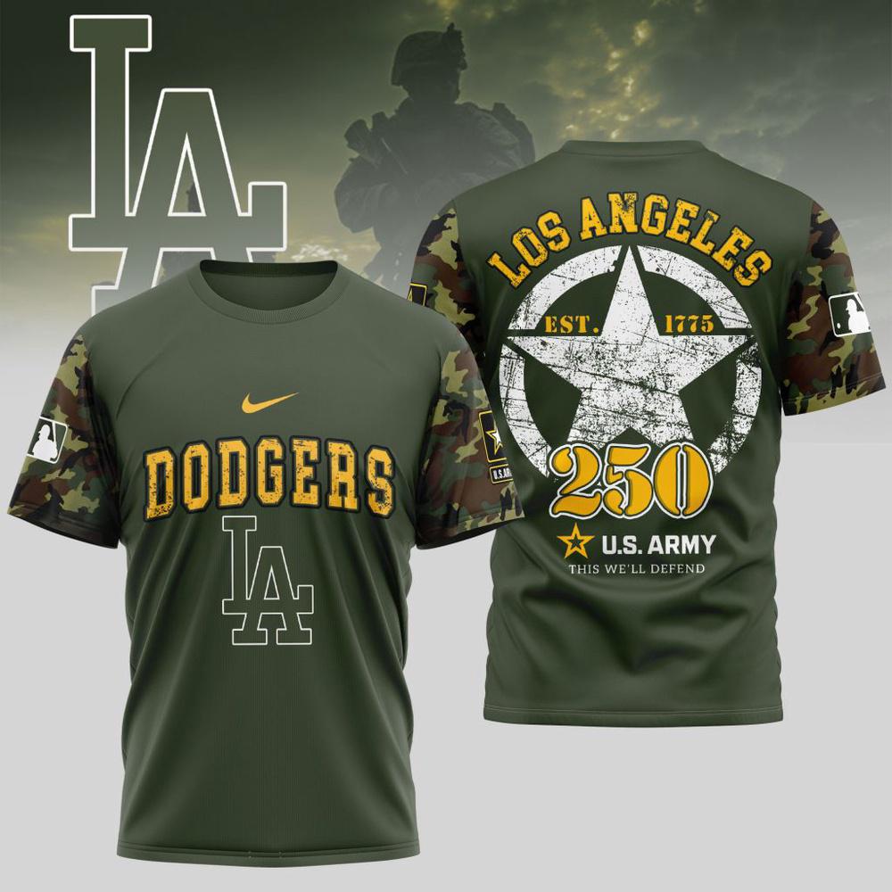Photos Of MLB Los Angeles Dodgers Special U.S. Army 250th Birthday 3D T-Shirt