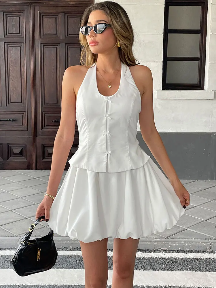 Solid Sexy Women’s Dresses Streetwear New Fashion Bow Zippers Halter Dress Sexy Backless Elegant Lady Knitted Dresses Clothing