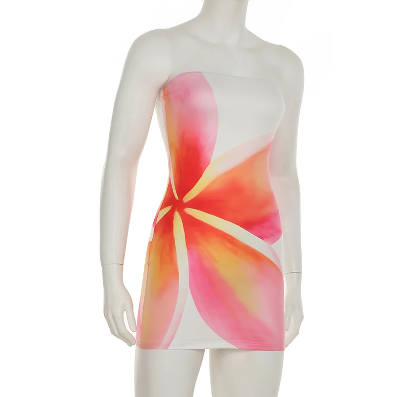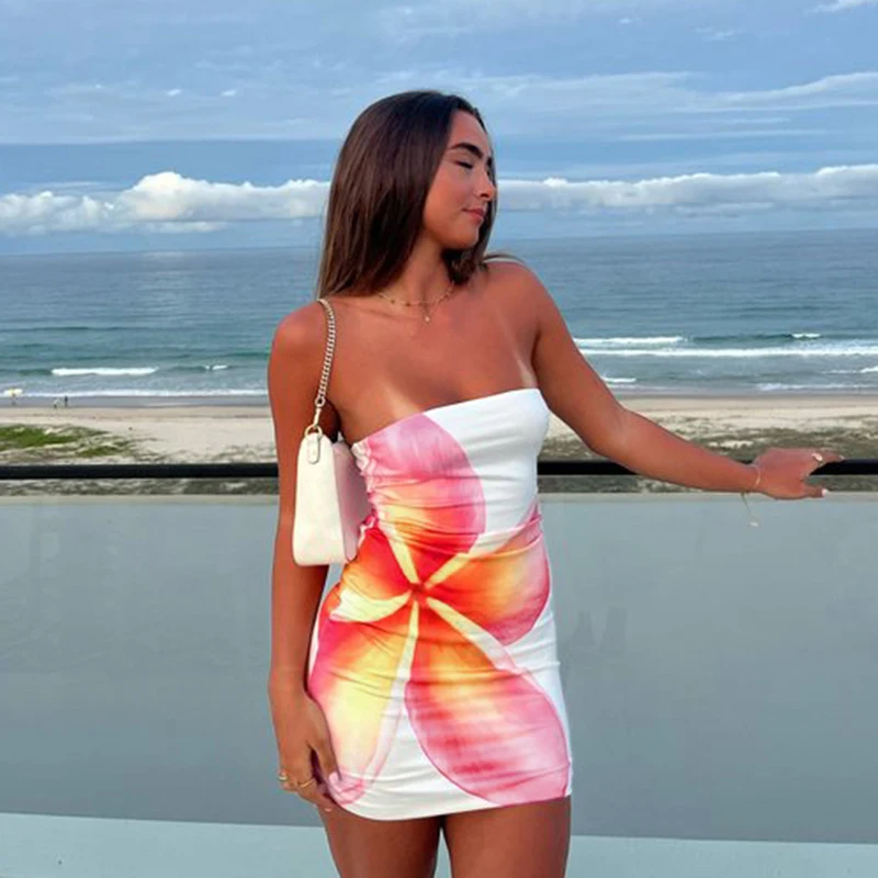 Women Floral Print Strapless Dress Summer Beach Vacation 2025 Women Backless Bodycon Wrap Short Dresses Sexy vestido femininos